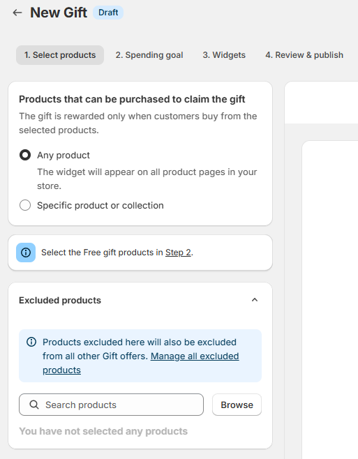💡 Tip: This step defines what counts toward the spending threshold—not the gift itself (that comes next).