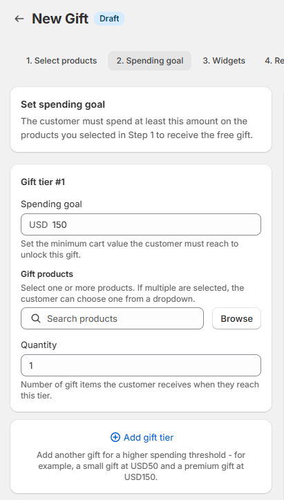 You can create up to 10 tiers, allowing you to reward higher spending with better gifts.