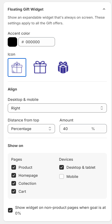 The floating gift widget is what customers see while shopping. It updates in real time as they progress toward rewards.
