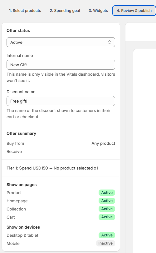 - Internal Name: Name that you can assign to this specific gift offer for easier internal management.